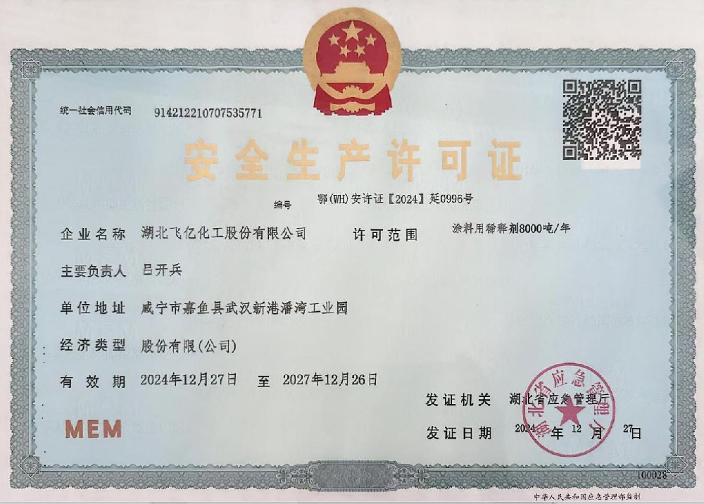 湖北飛億化工股份有限公司以人為本、倡導學習。經過多年的凝聚和歷練,公司擁有豐富實踐經驗的技術人員和銷售、生產的團隊,不斷研發適合市場和客戶的高質量產品。并努力爭取各項產品和服務達到客戶滿意。